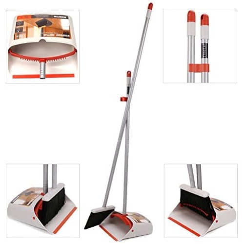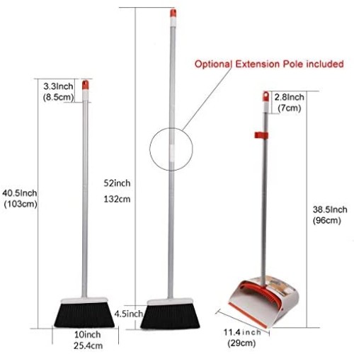 - ?Broom and Dustpan with Long Handle: 52"long handle Home broom dustpan with large-capacity, perfect for sweeping and long handle allow you to Stand upright for comfortable sweeping.No MORE BENDING
