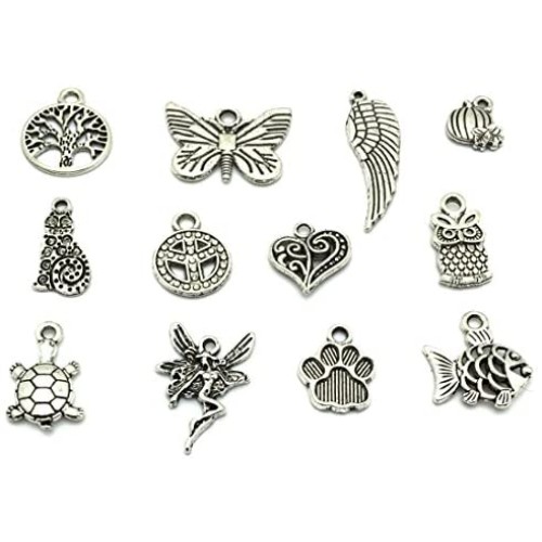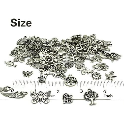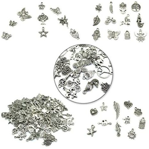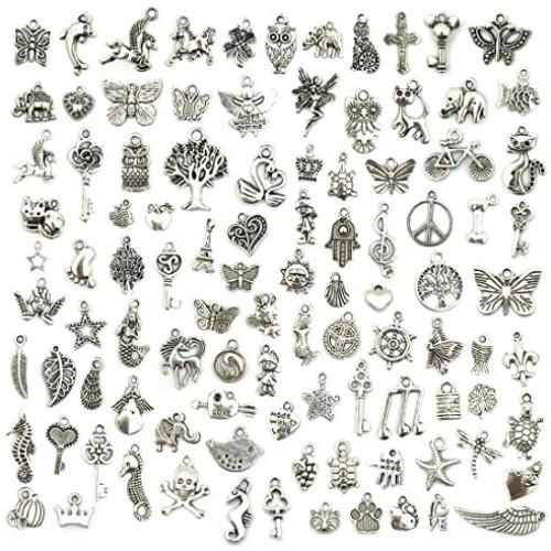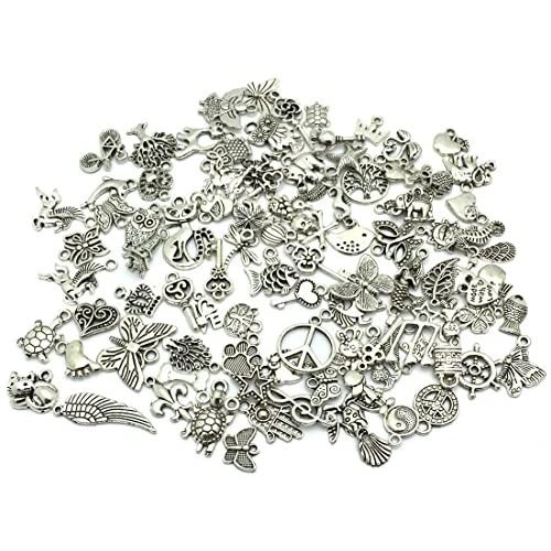 JIALEEY Wholesale Bulk Lots Jewelry Making Silver Charms Mixed Smooth Tibetan Silver Metal Charms Pendants DIY for Necklace Bracelet Jewelry Making and Crafting, 100 PCS