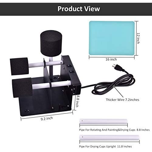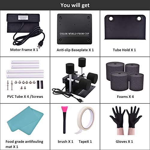 • ??All-in-one cup turner kit? The kit includes 1 x cup turners kit with 4 pvc pipes,4 x foams, 2 x plastic gloves (1 pairs), 1 x silicone brush, 1 x silicone mat (15.7 x 11.8inch), 1 x paper tape. These full abundant tools ensure you can make DIY craft easily,protect your desk surface and won?t dirty your hand. There are also two upright supports which can?t rotate??, you can put the made cup on the 11.81? pipes and perform other cup operations with the 8.66? pipes without delaying your fun.