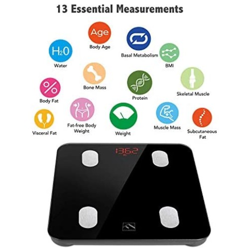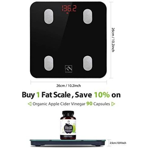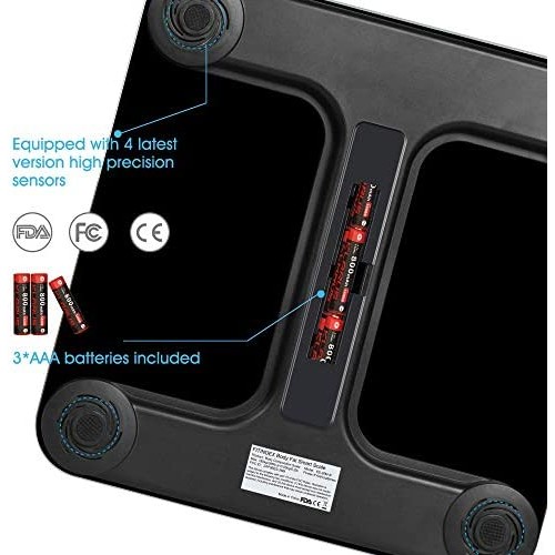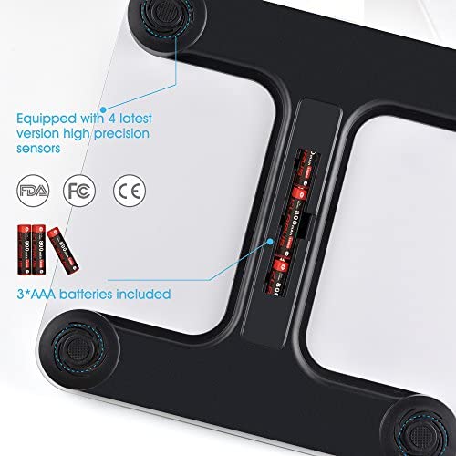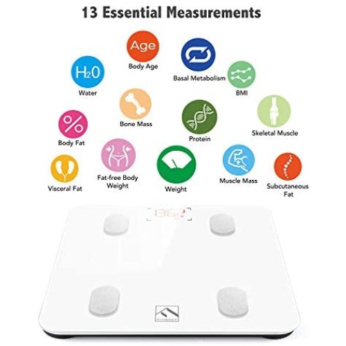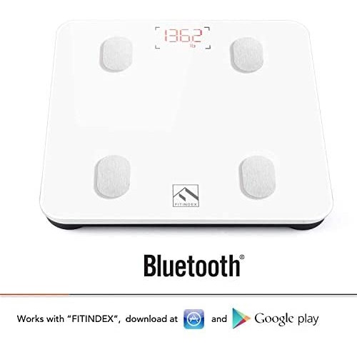 FITINDEX Bluetooth Body Fat Scale, Smart Wireless BMI Bathroom Weight Scale Body Composition Monitor Health Analyzer with Smartphone App for Body Weight, Fat, Water, BMI, BMR, Muscle Mass - White