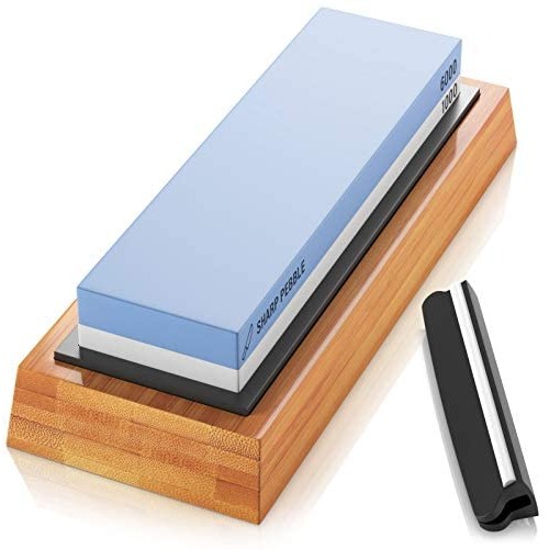Sharp Pebble Premium Whetstone Knife Sharpening Stone 2 Side Grit 1000/6000 Waterstone- Whetstone Knife Sharpener- NonSlip Bamboo Base & Angle Guide