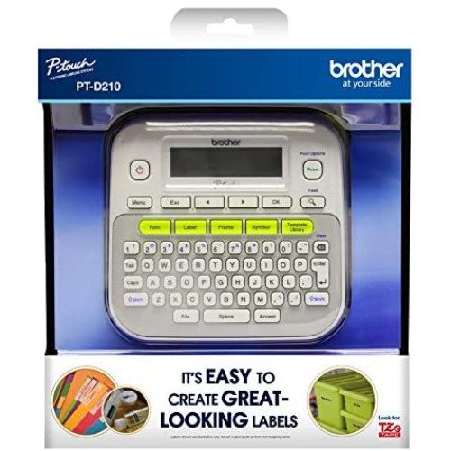 Brother P-touch, PTD210, Easy-to-Use Label Maker, One-Touch Keys, Multiple Font Styles, 27 User-Friendly Templates, White