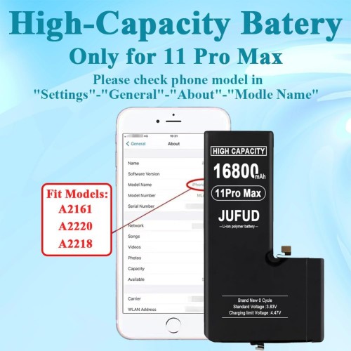 16800mAh Used for iPhone 11 Pro Max Replacement Battery - 0 Cycle Li-Polymer, Compatible with A2161 A2220 A2218 Models Includes Full Repair Tools