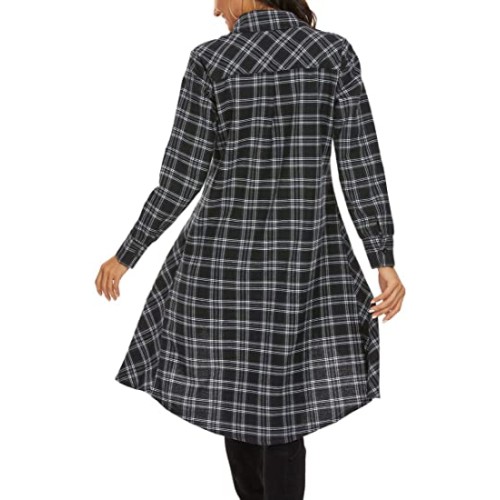 OLRAIN Womens New Plaids Irregular Hem Casual Shirt Dress